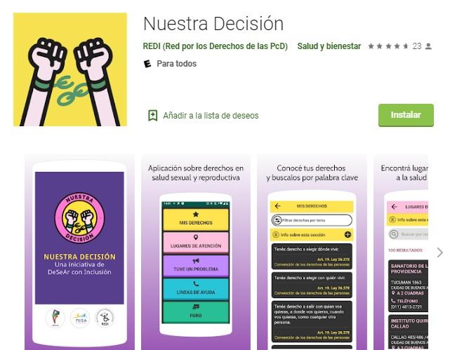 La app Nuestra Decisión en Google Play.