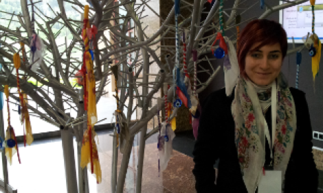 A graceful tree glimmering with scarves and blue beads to ward off the evil eye greeted us every day during the 12th AWID Forum: Nazar Degemesin - “May the evil eye not touch her”. Every morning participants could share their message and hang the bead, scarf and satchel (and coin if they had one) for another participant to find at the end of the day.